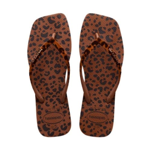 Uma Havaianas Slim, sim, com tiras mais finas, mas toda diferentona: com a forma mais quadrada, animal print e tiras com o toque do veludo. É muito estilo!
