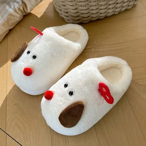 Material: algodão O adorável design de rosto de cachorro apresenta um lindo cachorro de desenho animado com orelhas marrons caídas, nariz vermelho de pom-pom e olhos costurados divertidos que adicionam charme e personalidade aos seus calçados para uso interno. Cobertura total para o calor do inverno O design do calcanhar fechado mantém seus pés totalmente cobertos e isolados, perfeito para relaxar em casa em climas frios. Material macio e macio feito com tecido de algodão macio que oferece uma textura macia e aveludada, proporcionando conforto duradouro para uso diário em ambientes internos. Sola antiderrapante segura A sola antiderrapante garante uma base estável em superfícies de azulejos ou madeira, tornando esses chinelos seguros e práticos para o uso doméstico diário. Apesar de sua construção espessa e quente, esses chinelos permanecem leves e respiráveis, ideais para longas horas de uso confortável.
