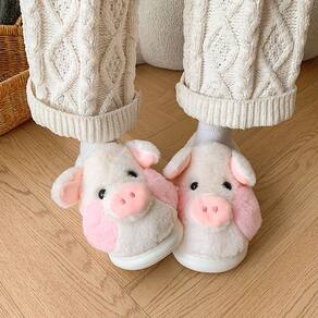 Material: algodão. Adorável design de desenho animado de porco — esses chinelos de pelúcia apresentam uma linda cara de porco com orelhas caídas e bochechas rechonchudas, adicionando um visual divertido e charmoso aos seus calçados de uso interno. Tecido de algodão macio e aconchegante — Feito de material de pelúcia de algodão de alta qualidade, garantindo uma sensação fofa, quente e agradável à pele, perfeita para o inverno. Envoltório completo para aquecer o calcanhar — Projetado com uma capa de apoio para o calcanhar que mantém seus pés confortáveis e bem protegidos em ambientes internos frios. Sola antiderrapante durável — Equipada com uma sola espessa e antiderrapante que oferece estabilidade e evita escorregões, adequada para vários pisos internos. Sapatos perfeitos para relaxar em casa — leves, grossos e quentes, ideais para relaxar, relaxar e manter seus pés confortáveis o dia todo.