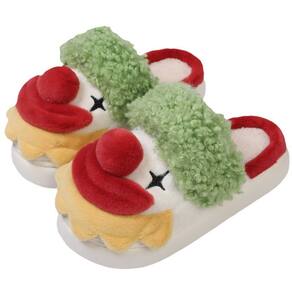 Material: design de palhaço colorido em algodão — atraentes e divertidos, esses chinelos apresentam um rosto de palhaço de desenho animado completo com nariz vermelho 3D, “cabelo” verde encaracolado e detalhes de gola amarela para um visual inconfundível e inovador. Interior fofo e macio — Feitos com pelúcia quente e forro de algodão, esses chinelos proporcionam uma sensação macia e aconchegante que envolve seus pés no calor durante os dias ou noites frios de inverno. Sola espessa de EVA — Projetada com uma sola durável e acolchoada que oferece excelente absorção de choque e tração antiderrapante para caminhar sobre pisos de madeira, azulejos ou carpetes. Ajuste confortável sem cadarço — Fácil de colocar e tirar, perfeito para relaxar em casa, em dormitórios ou enquanto descansa em noites informais. Ótimo para presentear e fazer cosplay — Uma opção de chinelo doméstico divertida e funcional para mulheres ou meninas que amam calçados domésticos exclusivos, com estilo de fantasia, com personalidade.