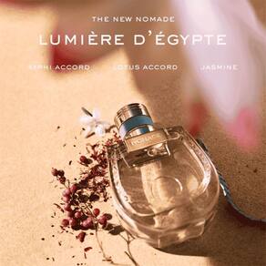 Para criar Nomade Lumire d'Égypte, Cécile Matton inspirou-se nas paisagens mágicas do Egito, desde as águas refrescantes do Nilo e a vegetação exuberante que cresce em suas margens até o calor do deserto mais além. Cada uma dessas paisagens é iluminada pela luz do sol egípcio, lindamente refletida neste mais recente capítulo da história de Chloé Nomade.