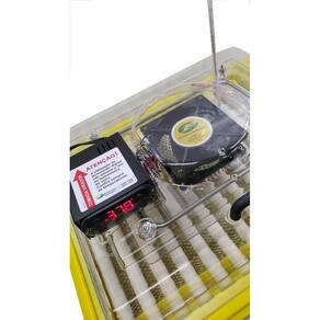 Chocadeira com controle digital de temperatura, com valores pré-determinados pelo usuário. Giro automático dos ovos. Grade de roletes universal que possibilita o uso para diferentes tamanhos de ovos simultaneamente. Circulação forçada de ar. Chocadeira indicada para iniciantes ou hobbystas. Caracteristicas: Marca: Premium Ecologica Tipo de Produto: Chocadeira Materiais: Base em PS, tampa em PETG Capacidade Ovos : Galinha 70; Pavão 38; Faisão 100; Codorna 180. Potência W : 130 W Ruido DB : Máximo de 58DB Voltagem: 127 Cor: Amarela Conteúdo da Embalagem: 1 chocadeira, 1 manual, 1 garrafa, 8 roletes, 1 termômetro, 1 tela de proteção Dimensões aproximadas do produto cm : 17Ax64Lx54C Peso líq. aproximado do produto: 6 Kg Modelo: hobby70 Ean: 7899767110526