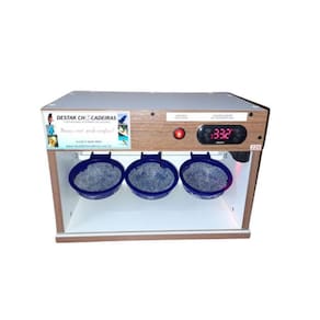 Chocadeira e estufa compacta para pássaros com 3 ninhos 110vPode ser usada como chocadeira para chocar ovos ou como estufa para criar filhotes recém nascidosAcompanha manual com instruçõesConfeccionada em mdf texturizado de 15 mm que oferece ótimo isolamento térmico.Controlador digital pid de última geração.Ventilador interno que garante uma distribuição uniforme da temperatura.Resistência em níquel cromo (menor consumo de energia)Bandeja para águaPorta transparente de correr, fácil acesso e visualização dos ninhos ou filhotesViragem automática dos ninhos a cada 2 horasChoca todos os tipos de pássarosGarantia de fábrica de 6 mesesDisponível nas voltagens 110v (não é bivolt)Produto novo: todas as chocadeiras são testadas e calibradas, dispensando ajustes e programações. Você receberá um produto de excelente qualidade e de funcionamento comprovado. Marca: Destak Chocadeiras