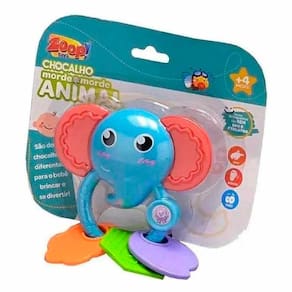 Chocalho e Mordedor - Morde-Morde Animal - Elefante - Zoop Toys: O Chocalho Morde-Morde Animal da Zoop Toys vai entreter o bebê e ajudá-lo no período de dentição. Possui mordedores flexíveis e coloridos, com formas divertidas para massagear a gengiva aliviando o desconforto dos dentinhos que estão nascendo. É super leve, tem design divertido de Elefante, com tamanho ideal para as mãozinhas pequenas segurarem com facilidade. Detalhes: • Design divertido inspirado em um Elefantezinho • Com cores vivas, texturas diferentes e um barulhinho divertido • Incentiva a percepção visual, o tato e na audição do seu bebê • Livre de BPA e Ftalatos Informações: • Produto: Chocalho Morde-Morde Elefante • Marca: Zoop Toys • Coleção: Chocalho Morde-Morde Animal • Modelo: Elefante • Tipo: Chocalho com Mordedor para Bebê • Categoria: Brinquedos para Bebês • Subcategoria: Chocalho • Tamanho aprox. do produto: 14 cm de Altura • Conteúdo: 01 Chocalho Morde-Morde • Recomendação: para bebês a partir de 04 meses de idade Especificações: • Referência: ZP00666 • Código de Barras: 7899788400361 • Embalagem (C x A x L): 20 x 18 x 04 cm • Embalagem (Peso): 0.092 kg • Material / Composição: Plástico e Silicone • Registro: 005275/2019 • Certificado: Órgãos Autorizados - OCP´S (Organismos de Certificação de Produtos) Aviso: • As imagens são meramente ilustrativas • Os tamanhos e medidas são aproximados • As cores e estampas dos produtos podem ter variações • As informações são de responsabilidade do fabricante ou fornecedor