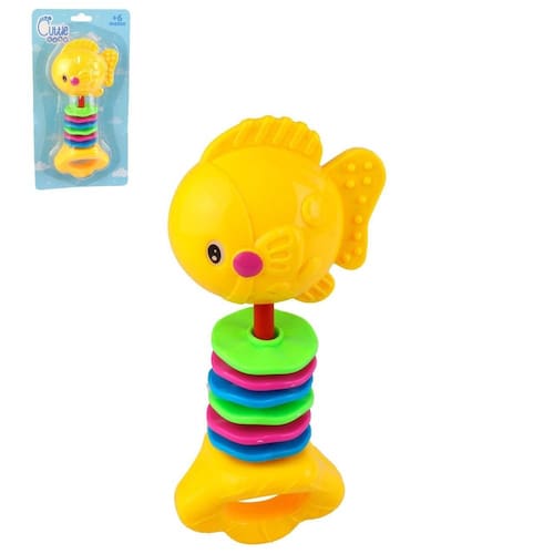 Chocalho Para Bebê Plástico Fundo do MAR Co O Chocalho é um brinquedo infantil que combina diversão, com estimulos sensorial. Projetado especialmente para bebês, este chocalho apresenta um design adorável de Animais do Mar com cores vibrantes que capturam a atenção dos pequenos.\nFeito com materiais seguros e livres de BPA, o chocalho é suave ao toque e confortável para os bebês segurarem. O som suave e reconfortante do chocalho incentiva a curiosidade auditiva e promove o desenvolvimento sensorial dos bebês.\nDisponível em cores diversas.\nEspecificações:\nMarca : ARK BRASIL\nTipo de material : Plástico\nCores ou Estampa : Color\nDimensões do Produto : 16,5 X 7,5 X 5 CM\nDimensões da Embalagem : 21,5 X 11,5 X 5 CM\nPeso Bruto (Gramas) : 0.076 Marca: Não Informado