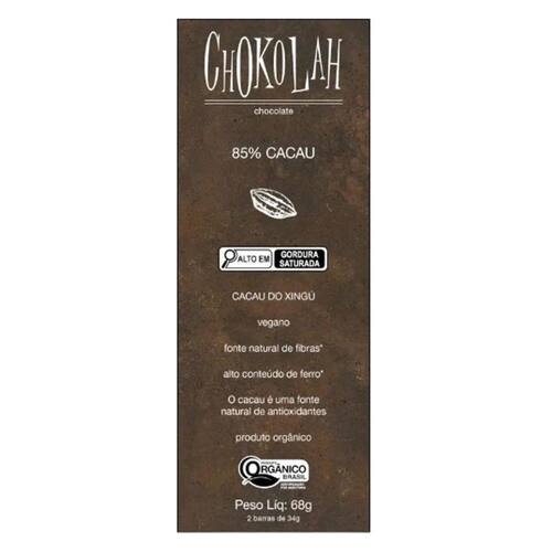 Chocolate 85% cacau com açúcar demerara orgânico chokolah 68g