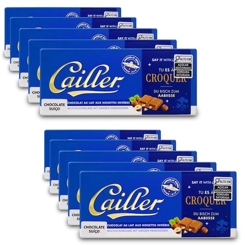 Chocolate Cailler Avelãs Inteiras Kit 10 Barras de 100g Explore o sabor do verdadeiro chocolate suíço O Chocolate Cailler Avelãs Inteiras 100g é um convite à sofisticação. Produzido na Suíça, traz pedaços inteiros de avelãs crocantes envoltos em chocolate ao leite de qualidade superior. Destaques que encantam Chocolate suíço tradicional desde 1819 Avelãs inteiras e selecionadas Textura cremosa com toque crocante Embalagem prática de 100g Ideal para presentear ou saborear momentos especiais Mais do que sabor, uma tradição Cailler é uma das marcas mais antigas e prestigiadas da Suíça. Essa combinação única de chocolate e avelãs é perfeita para quem valoriza a autenticidade e a excelência. Conteúdo 10 Tabletes de 100g Peso Liquido Total: 1000g Informações Adicionais Ingredientes: Açúcar, leite em pó integral, avelãs inteiras, de cacau, massa de cacau, emulsificante lecitina de girassol , aromatizante natural de baunilha. Pode conter traços de outros frutos secos e soja. Alérgicos: Contém leite e avelã. Pode conter traços de nozes, amêndoas, soja. Armazenamento: Conservar em local seco e fresco, entre 15C e 20C. Validade: 12 meses a partir da data de fabricação. Fabricante: Cailler - Nestlé Suíça. Marca: Não Informado