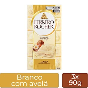 Chocolate Ferrero Rocher Branco com Avelã Kit 3 Barras de 90g Elegância em sabor e textura O Ferrero Rocher Branco com Avelã é a combinação perfeita de uma camada crocante de chocolate branco, envolvendo um coração cremoso com pedaços de avelã. Este bombom é a escolha ideal para quem busca sofisticação em cada mordida, seja para presentear ou para momentos especiais. Por que escolher Ferrero Rocher Branco Delicioso recheio cremoso com avelãs. Cobertura crocante de chocolate branco. Embalagem sofisticada e perfeita para presentes. Produzido com ingredientes selecionados de alta qualidade. Ideal para momentos de celebração ou consumo diário. Conteúdo: 3 Barras com 90g cada. Peso líquido total: 270g. Informações Adicionais: Ingredientes: Chocolate branco açúcar, leite integral em pó, de cacau, emulsificantes , avelãs, açúcar, óleos vegetais, soro de leite em pó, aromatizantes. Alérgicos: Contém leite, avelãs e derivados de soja. Pode conter amendoim e outros frutos secos. Condições de armazenamento: Conservar em local fresco e seco, longe de luz solar direta. Validade: 6 a 12 meses. Fabricante: Ferrero do Brasil Indústria e Comércio Ltda. Marca: Não Informado