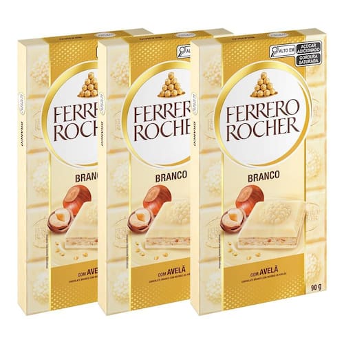 Chocolate Ferrero Rocher Branco Avelã Kit 3 Barras De 90G