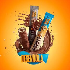 Crocante rolinho de wafer coberto e recheado com o delicioso chocolate Hersheys Cookies'n'Creme e com um toque final de flocos de arroz deixando ainda mais gostoso Seu formato é ideal para comer quando e onde quiser, perfeito para aquela energia extra necessária para transformar sua rotina