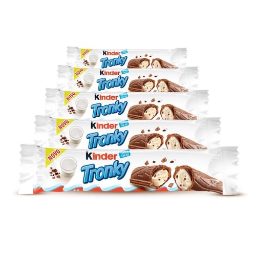 Kinder Tronky deixa o momento da pausa ainda mais gostoso e relaxante. É uma deliciosa combinação de várias texturas: uma casquinha de wafer crocante, recheado com um delicioso creme com leite, chocolate e pedacinhos de biscoitos crocantes. Embalado em porção individual, é perfeito para qualquer momento do dia ou como acompanhamento para seu café ou chá. Peça o seu agora