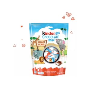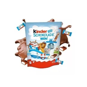 Marca: Kinder Composição: leite em pó integral, manteiga de cacau, pasta de cacau, lecitina de soja, acúcar, óleo de palma, leite em pó desnatado. Alergênicos: contém lactose, glúten e derivados de soja. Origem: Alemanha Peso: 120g