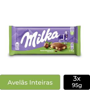 Chocolate milka avelãs inteiras kit 3 barras de 95g A combinação perfeita de cremosidade e crocância Descubra a textura e o sabor irresistíveis do chocolate milka avelãs inteiras. Esta barra de 95g une a suavidade inconfundível do chocolate ao leite, feito com 100% de leite dos alpes, com a crocância deliciosa de avelãs inteiras e torradas. Cada pedaço é uma experiência completa, onde a cremosidade do chocolate abraça o sabor marcante das avelãs, criando uma harmonia perfeita. É a escolha ideal para quem busca um chocolate com mais textura e um sabor sofisticado. Por que o chocolate milka avelãs inteiras é irresistível Avelãs inteiras: generosamente recheado com avelãs inteiras e torradas, garantindo uma crocância autêntica em cada mordida. Leite dos alpes: o segredo da sua cremosidade está no uso do autêntico leite da região alpina, que equilibra perfeitamente com o sabor das avelãs. Textura e sabor: a combinação ideal para quem ama a suavidade do chocolate milka, mas não abre mão de uma textura crocante e um sabor mais complexo. Qualidade milka: a de um produto feito com a tradição e a qualidade de uma das marcas de chocolate mais amadas do mundo. Pausa perfeita; ideal para um momento de prazer, para recarregar as energias com um toque de sofisticação. O chocolate milka avelãs inteiras é a prova de que a ternura pode ser crocante. Uma delícia para os sentidos que vai te conquistar desde o primeiro pedaço. Conteúdo: 3 barras de chocolate milka avelãs inteiras Peso líquido total: 285g Informações adicionais: Ingredientes: açúcar, avelãs 17% , de cacau, leite em pó desnatado, massa de cacau, soro de leite em pó, gordura de leite, emulsificante lecitina de soja , pasta de avelã, aroma. Cacau: 30% mínimo. Alérgicos: contém avelãs e derivados de leite e soja. Pode conter outras nozes e trigo. Contém lactose. Contém glúten. Condições de armazenamento: conservar em local fresco e seco. Fabricante: mondelz international. Marca: Não Informado Ean: 7908320929861