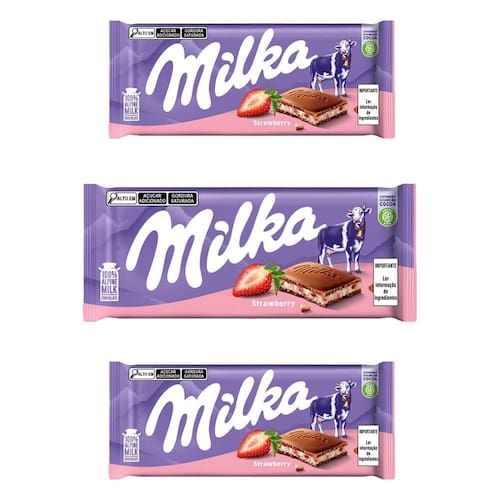 Chocolate Milka Morango Barra Kit Com 3 Unidades De 100G