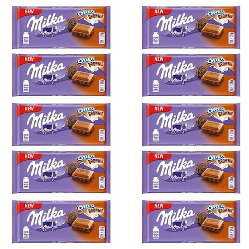 Chocolate Milka Oreo Brownie Barra Kit com 10 Unidades de 100g Uma Explosão de Sabor Cremoso e Crocante Desfrute do irresistível sabor do Chocolate Milka Oreo Brownie, uma combinação perfeita entre o chocolate ao leite cremoso, o crocante das peças de Oreo e o toque indulgente do brownie. Ideal para momentos especiais ou para adoçar o seu dia com um doce de qualidade premium. Destaques do Produto: Sabor Único: Combina o chocolate ao leite cremoso Milka, pedaços de Oreo crocantes e um recheio de brownie indulgente. Textura Perfeita: Uma mistura de cremosidade e crocância em cada mordida. Origem Importada: Produzido com o exclusivo leite alpino, garantindo qualidade superior. Tamanho Ideal: Cada barra contém 100g, perfeita para compartilhar ou saborear sozinho. Conteúdo: 10 Barras de chocolate Milka Oreo Brownie 100g. Peso Liquido total: 1.000g Informações Adicionais: Ingredientes: Açúcar, leite em pó integral, de cacau, massa de cacau, biscoito Oreo farinha de trigo enriquecida, óleo vegetal, cacau, açúcar, bicarbonato de sódio, sal, emulsificante , óleo de palma, farinha de trigo, e outros. Contém aromatizantes e emulsificantes. Alérgicos: Contém glúten, leite, soja e derivados de trigo. Pode conter traços de castanhas. Informação Nutricional Porção de 25g - 1/4 da barra : Valor energético: 136 kcal 7% VD Carboidratos: 17g 6% VD Proteínas: 2g 3% VD Gorduras totais: 7g 13% VD Gorduras saturadas: 4g 18% VD Sódio: 30mg 1% VD valores diários com base em uma dieta de 2.000 kcal. Seus valores podem variar. Conservação: Manter em local fresco e seco, ao abrigo de luz e calor. Validade: Vide data de validade na embalagem. Fabricante: Mondelz International. Marca: Não Informado Ean: 7908320921230
