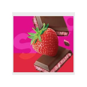 Caixa contendo 12 unidades de barra de chocolate com recheio sabor morango Stikadinho de 70 gramas cada. Peso total da embalagem 840 gramas.