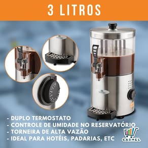 Possui torneira de alta vazão que agiliza o uso e facilita a higienização do equipamento, além de duplo termostato para maior segurança na manutenção da temperatura.