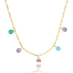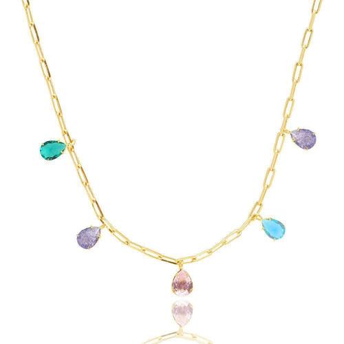 Choker Cartier Grossa Com Pedras Fusion Gota Coloridas Folheado A Ouro 18k