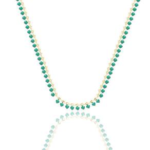 Choker Com Bolinhas Verdes E Detalhes Folheado A Ouro 18K