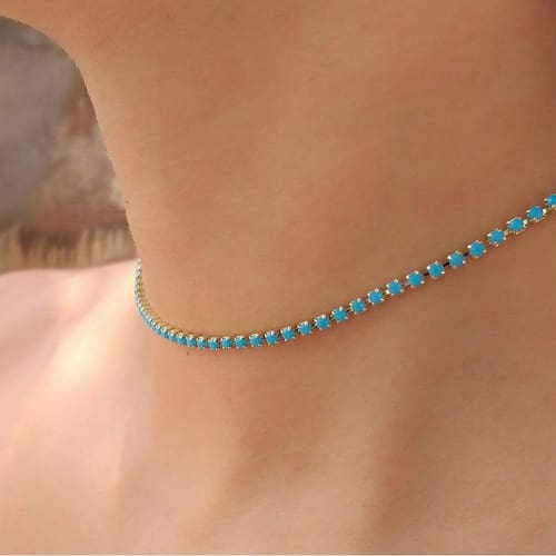 Choker De Strass Azul Claro Leite Folheado A Ouro18K