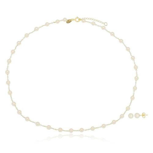 Choker e Brinco Pérola Coração Banhado a Ouro 18k 9263 Conjunto: choker medindo 35cm + 5cm de extensor regulável em pérola formato coração medindo 5mm com brinco medindo 6mm