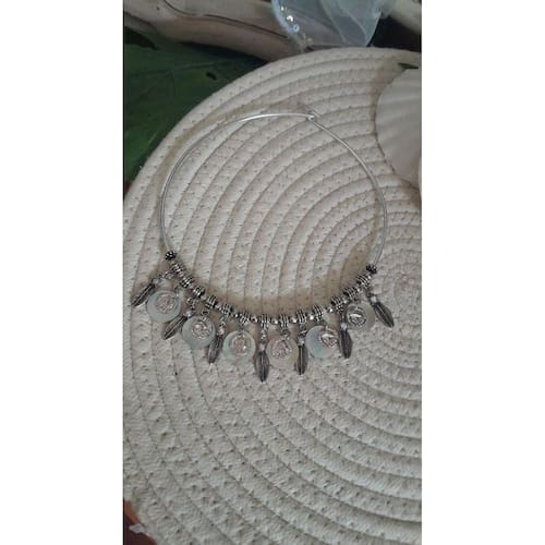 Caracteristicas do produto:Medalhas em aluminio no banho níquel pintado.Bolinhas de metal preteada.Aro maleável em aluminio prateado.Madreperolas naturais irisadas.Peninhas em metal prata envelehecidas.Cuidados para manter suas bijoux sempre lindas e novinhas:Nossos produtos são feitos manualmente para garantir a qualidade e durabilidade dos mesmos, por isso, indicamos alguns cuidados específicos- Evite quedas bruscas para não danificar seus acessórios- Evite contato com água, perfumes,cremes e filtro solarespere secar bem para poder fazer uso do acessório.- Não use produtos de limpeza ou abrasivos.- Não guarde suas peças junto a outras, pois o atrito entre elas pode danificá-las além de embaraçar as peças.Tenha por preferência guardá-las separadamente em embalagens unitárias.com esses cuidados você terá seus acessórios por muito mais tempo. Marca: Mariaquino Store