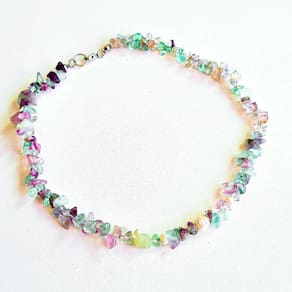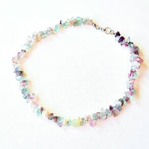 Choker feita com Fluorita e pérola natural, detalhes em metal com banho prateado. Peça trabalhada à mão, ajustável. Confortável e leve, a corrente possui de 45cm de circunferência. Acabamento de qualidade. Peso: 15g Design exclusivo.