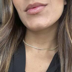 O Colar Riviera possui zircônias de 2mm em toda sua extensão. Uma peça versátil e moderna que permite ser usada só ou acompanhada de outras correntes. Seu revestimento em Ouro garante charme e brilho ao look.