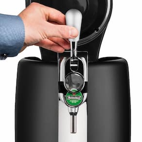 Chopeira Krups Beertender para barris de 5L Heineken, alavanca com inclinação de 90°, indicador de temperatura por LED, design moderno para uso doméstico.Porta-fio