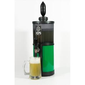 Chopp gelado em 01 minuto Compacta, de uso doméstico Design moderno Não utiliza energia elétrica Capacidade do reservatório: 2,8 litros Volume de chopp/hora: 10 litros Torneira tipo italiana, com bico controlador de vazão Serpentina em alumínio 3/8 8 metros de comprimento Sistema de refrigeração à gelo, utiliza 1,5kg de cubos de gelo; Duração do gelo: mínimo de 2 horas em temperatura ambiente; Pressão manual: até 30 psi ou 1 bar Isolação térmica; Abastecida por cerveja de sua preferência; Temperatura do chopp: 2,5 c a 6,0 c; Pés niveladores; Altura da torneira ideal para copos grandes; Material plástico átoxico; Resistente; Normas abnt; Produto com patente requerida