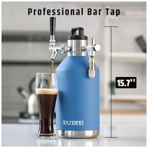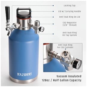Torneira profissional torneira dispensadora de barra ajustável, trava para viajar com segurança e solta para destravar para desfrutar de caminhadas de acampamento felizes. 30psi Carbonation Cap Regulador de CO2 de estágio único, insira um cilindro de CO2 de 16g não incluído e gire o botão para aumentar ou diminuir entre 0 a 30 psi. Design isolado a vácuo de parede dupla por um longo tempo fresco, mantém a bebida gelada por até 24 horas ou quente por até 12 horas. Em movimento uma alça de transporte na tampa superior, leve sua cerveja caseira ou bar para qualquer lugar acampamento, caminhada, festa de churrasco, viagem de pesca. Exterior sólido presenteável com elegante acabamento revestido em pó azul marinho, aparência atraente e proteção extra contra amassados e arranhões Marca: Não Informado