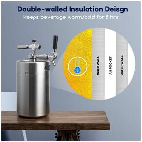 PAREDE DUPLA O isolamento de aço inoxidável de parede dupla mantém a bebida quente, fria por 8 horas. O kit dispensador de torneira growler para tanque de bebida é construído com aço inoxidável 304 de qualidade alimentar que mantém os sabores da cerveja e frescos MANTENHA A CERVEJA FRESCA O mini sistema dispensador pode manter a pressão de vácuo no barril e manter a frescura por poucas bocas. Perfeito para homebrew, rascunho e artesanato PROJETO DERACHABLE O estilo de tampa de lança permite que você destaque o regulador e o bico, mantendo o conteúdo do barril sob pressão para zenamento. , capacidade de 5L e o tamanho de 15 x 15 x se encaixa no refrigerador , geladeira doméstico padrão e é fácil de transportar REGULADOR ATUALIZADO O regulador atualizado mostra uma pressão mais precisa. Monitore o PSI atual do medidor do regulador, ajuste a pressão girando o botão de ajuste para fazer a cerveja obter carbonatação e espuma perfeitas SISTEMA DE CARTUCHO DE CO2 Parafuse os cartuchos de gás CO2 rosca de no regulador para fornecer carbonatação pressurizada ao seu sistema de fabricação de barril. A cápsula de 16g pode tocar 5L de cerveja. CARTUCHO DE CO2 NÃO INCLUÍDO Marca: Não Informado