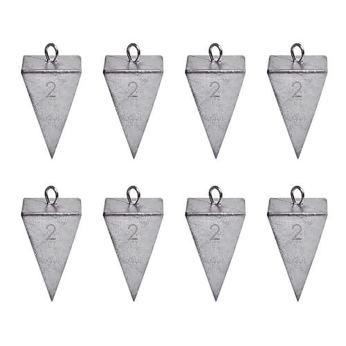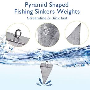 - Os pesos de pesca em pirâmide têm formato triangular e são excelentes para pesca de surfe e pesca em cais. Eles se mantêm bem em fundos arenosos e também se mantêm bem em correntes fortes, como as ondas