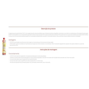 Descrição do produto A argamassa de injeção fischer fis p é uma argamassa de resina de poliéster para a fixação econômica de grades, cantilevers e corrimões em alvenaria que não requerem aprovação. O fis p é processado com os componentes do sistema fischer haste roscada fis a, haste roscada interna fischer fis e juntamente com as buchas de âncora de injeção fischer dentro e fora de casa. Os cartuchos já abertos podem ser reutilizados simplesmente trocando o misturador estático. Isto economiza tempo e dinheiro durante a instalação