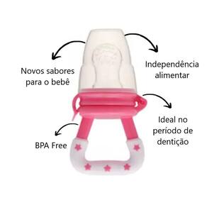 Alimentador Infantil Chupeta Frutas Bebê Silicone Mordedor Os bebês vão se deliciar com os sabores das frutas e legumes! O Porta-frutinha da Color Baby é ideal para introduzir novos alimentos ao bebê com segurança. Com sugador em silicone e design anatômico, é perfeito para o bebê segurar, estimulando a auto alimentação e ainda permite que experimente diferentes sabores e texturas sem o risco de engasgar. O tamanho compacto de 5cm x 11cm torna-o fácil de segurar e manusear para o bebê. Além disso, a cor rosa vibrante torna o momento da alimentação ainda mais alegre. Feito com materiais de alta qualidade, este mordedor é durável e fácil de limpar. Proporcione ao seu bebê uma experiência de alimentação segura e prazerosa com o Porta Frutinhas Alimentador para Bebês de silicone da Color Baby. Especificações: - Possui tampa protetora para guardar e transportar com higiene. - Design Anatômico - Livre de BPA - Alimentação Saudável - Material: Silicone - Idade: a partir de 04 meses (ou 06, dependendo da introdução dos alimentos indicado pelos pediatras) - Cor: Rosa Medidas: - Altura: 11cm - Largura: 5cm - Bico: 4cm x 3,5cm Conteúdo: - 1 Chupeta Alimentadora
