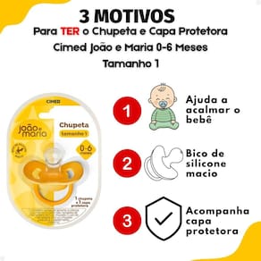 Perfeita para o uso diário, a Chupeta Cimed João e Maria auxilia no relaxamento e conforto do bebê em diversas situações, seja em casa, durante passeios ou momentos de descanso. Ideal para acalmar o bebê antes de dormir, durante viagens ou em momentos de irritabilidade, proporcionando conforto e segurança em todos os momentos.