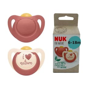 O kit com 2 Chupetas nuk for Nature foi desenvolvido com mais de 98% de matérias-primas naturais, sendo que a sustentabilidade não se limita apenas à chupeta.