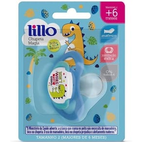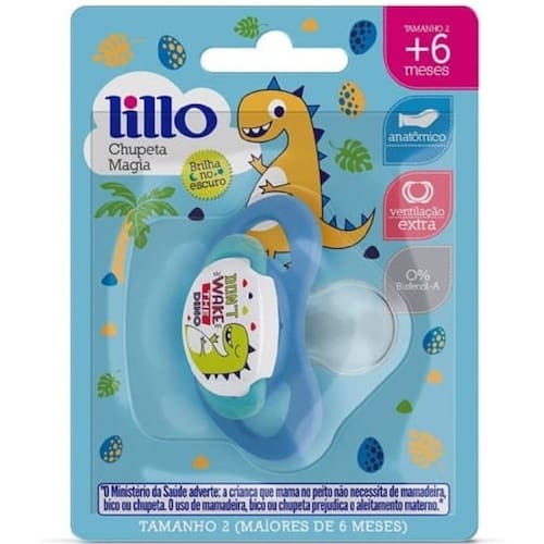 Chupeta Lillo foi desenvolvida com bordas arredondadas que permitem uma melhor acomodação ao rosto. Fixador que brilha no escuro, desenhos divertos e bico em silicone macio e transparente. Bico ortodôntico Bisfenol A - 0%