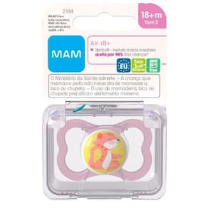 O Bico simétrico e com textura SkinSoft - textura macia e sedosa aceita por 94% das crianças. Disco Curvado para o máximo conforto, permite a circulação do ar pelo design exclusivo da Mam. Botão simples e fácil de pegar, fácil de se fixar ao prendedor de chupetas da MAM.