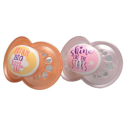 A embalagem contém 2 unidades da Chupeta Sayings - Mam, perfeita para quem precisa de uma chupeta reserva ou para quem tem mais de um bebê.