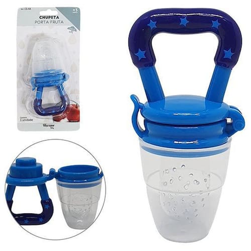 Chupeta Porta Fruta De Silicone / Plástico Azul 10,5X5X4Cm