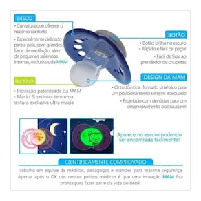 Chupeta sayings dupla tam. 2 (6m+) - mam Design da mam: - formato simétrico, para um posicionamento sempre correto de uso - projetado com dentistas para um desenvolvimento oral saudável Disco: - curvatura que oferece o máximo conforto - especialmente delicado para a pele, com grandes furos de ventilação, além de pequenas saliências internas, exclusivas da mam Botão: - rápido e fácil de pegar Silk teat: - inovação da mam: macio e sedoso Aprovado cientificamente: Trabalho em equipe para garantir a máxima segurança: Somente após a aprovação dos experts médicos, as nossas inovações estão disponíveis para fazer parte da vida da criança. Tamanho 2 (maiores de 6 meses) Composição: disco em polipropileno e bico em silicone. Acompanha caixa esterilizadora para manter a higiene da chupeta