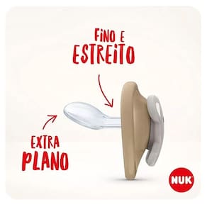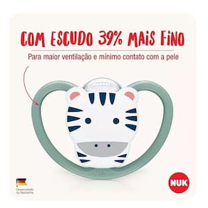 Chupeta Space da Nuk, possui nova tecnologia desenvolvida para o conforto do seu bebê ao longo do seu crescimento. Bico oral fit 2.0, mais fino e mais suave, possui máxima ventilação, mínimo contato com a pele, evitando irritação e alergia no bebê. Sua embalagem pode ser higienizada com vapor no microondas. BPA Free.