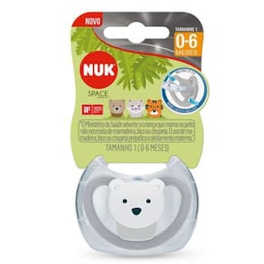 A nova NUK Space foi especialmente concebida para bebês com a pele particularmente sensível. Os seus orifícios de ventilação extra-largos permitem o máximo de circulação de ar, deixando a pele respirar. É por isso, que 99% das mães recomendam a nova NUK Space para bebês com a pele sensível, além disso o bico da chupeta mantém o formato NUK até agora desenvolvido. A forma original NUK foi desenvolvida através do formato do mamilo da mãe enquanto amamenta, permitindo assim um encaixe perfeito na cavidade oral do bebê, enquanto este faz a sucção.