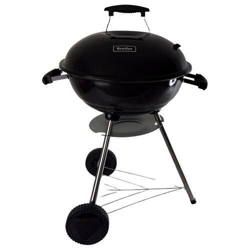 Dimensões: 79 cm (altura) x 58 cm (largura) x 46 cm (profundidade).Área de grelha: 44 cm de diâmetro.Material: Aço esmaltado e aço inoxidável.Por que escolher a Churrasqueira a Bafo Portátil Broiler?