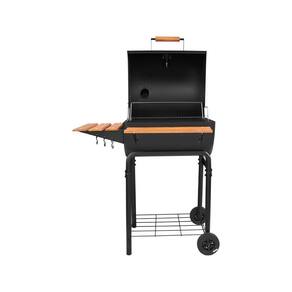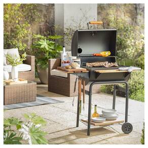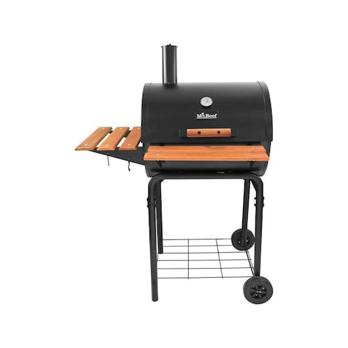 Churrasqueira a Carvão com Defumador da marca Mr. Beef, especialista em churrascos, oferece conforto, design e tudo o que necessita para preparar um saboroso churrasco para a família e amigos. Este produto tem 2 níveis de cozimento numa área de (LxC) 51x48 cm, com 2 rodas firmes possibilitando colocar no espaço do seu pátio ou terraço. No que diz respeito à sua fabricação, é feito de Ferro preto, o que lhe confere estilo e elegância, e vem com uma grade inferior para localizar, por exemplo, carvão.