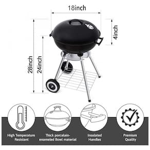 Portátil com rodas: embalagem melhorada e material durável. O grelhador a carvão redondo de 18 polegadas é pequeno, leve e fácil de instalar. Pode ser transportado para diversos locais como praias, fazendas e quaisquer outros locais ao ar livre Fácil de usar e limpar: O pequeno grelhador a carvão vem com duas alças e rodas duráveis e pode ser facilmente movido de um lugar para outro. Depois de cozinhar os alimentos, eles podem ser facilmente limpos usando o sistema de limpeza de um toque Fácil de instalar e vendedor baseado nos EUA: pode ser facilmente instalado e imediatamente para cozinhar. Requer ferramentas básicas que não estão incluídas na embalagem Qualquer coisa que falte ou chegue danificada, estamos localizados na Carolina do Norte e atendemos você imediatamente. Material de alta qualidade: É feito de aço de alta qualidade que o torna resistente à ferrugem e resistente. Nosso grelhador portátil é uma alternativa económica aos grelhadores a carvão Weber. Ele também pode substituir e atualizar suas mini grelhas Marca: Não Informado