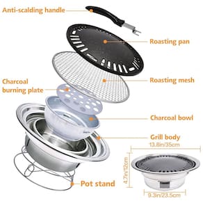 O que você obterá Corpo da grelha, tigela de carvão, placa de queima de carvão, assadeira, rede para assar, suporte de panela e cabo anti escaldante. Todas as ferramentas necessárias para churrasco estão aqui.