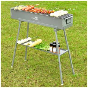 Ampla aplicaçãoA grelha é perfeita para qualquer espetinho, Shish Kebab, Kebab de Cordeiro, Shashlik, Yakitori Japonês, Satay da Malásia, Satay Tailandês, Espeto de Cordeiro Chinês e todos os outros bifes, peixes e vegetais, etc. , utilização não autorizada, camping ou no pátio, quintal, jardim, viagens, parque, praia.