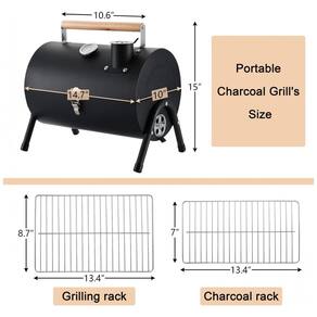Detalhes construídos Ambas as pernas de suporte triangulares fortalecem a robustez da churrasqueira a carvão, de pé no chão, mesa, gramado mais estável sem balançar. A trava reforçada facilita a abertura ou fechamento da tampa e não abre quando você a pega. Muito portátil para transportar ao ar livre. A tampa da churrasqueira é suportada por 2 hastes de tração para função à prova de vento. O cabo de madeira liso é revestido com óleo brilhante sem rebarbas.